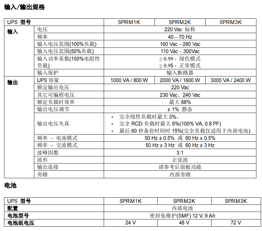 施耐德SPRM1K/SPRM2K/SPRM3K 是高性能不間斷電源產品(UPS)能夠有效保護電子設備,防止設備因以下原因而受損,如:市電斷電、電壓過低、電壓驟降、浪涌、小幅市電波動和電源擾動等。另外該產品在市電恢復安全水平或電池完全放電前還能作為備用電源使用。