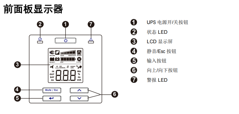 施耐德SPRM1K/SPRM2K/SPRM3K 是高性能不間斷電源產品(UPS)能夠有效保護電子設備,防止設備因以下原因而受損,如:市電斷電、電壓過低、電壓驟降、浪涌、小幅市電波動和電源擾動等。另外該產品在市電恢復安全水平或電池完全放電前還能作為備用電源使用。 高易用性 ● LCD 顯示界面,參數設置快速便捷
